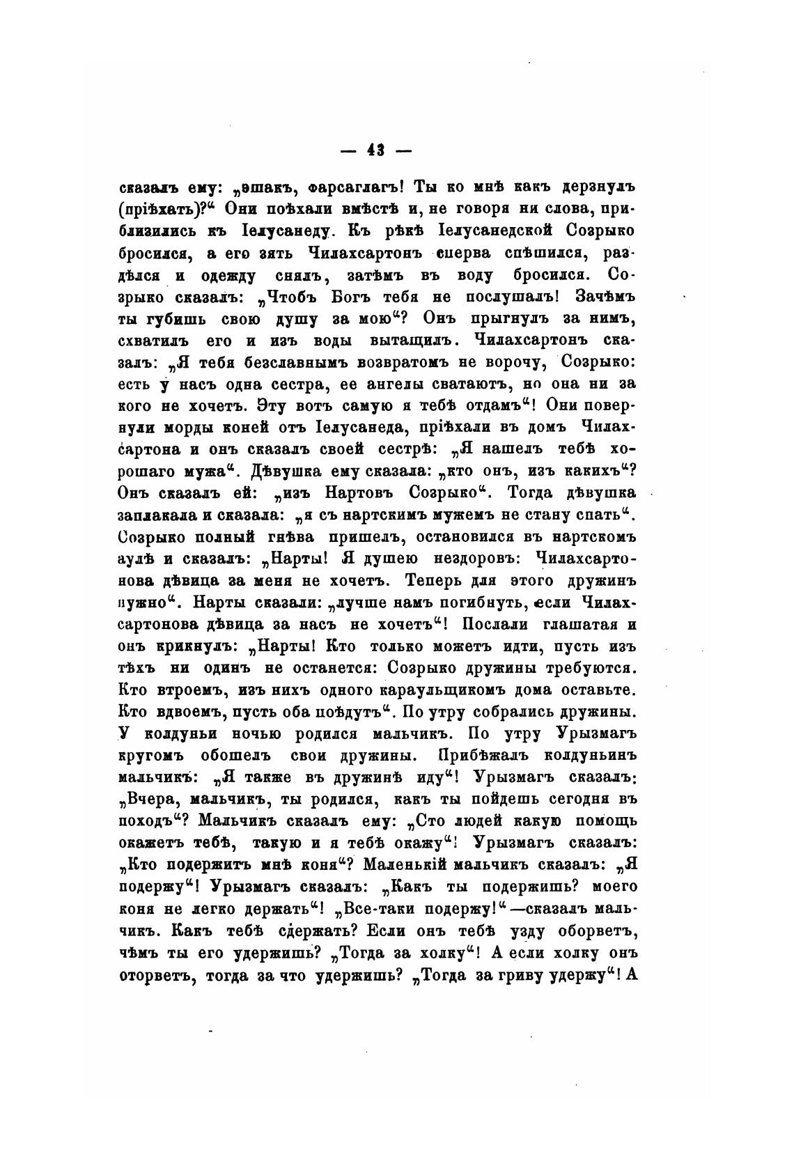 Онъ сказадъ ей: „изъ Нартовъ Созрыко'. Тогда Овушка