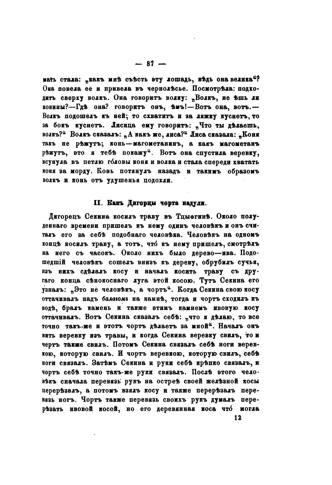 воиъ?С Водкъ сказа»: „А вакъ же, лиса? С Лиса свазиа: „Коня