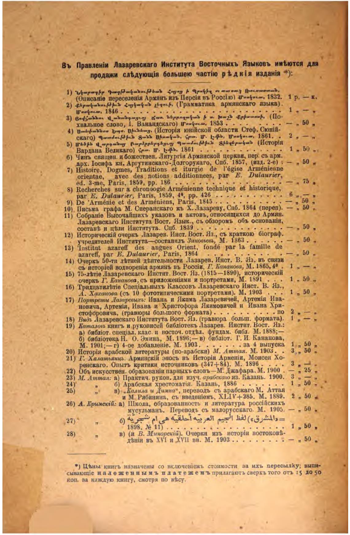 Въ Лазаревскаго Института восточныхъ Языковъ иивются для