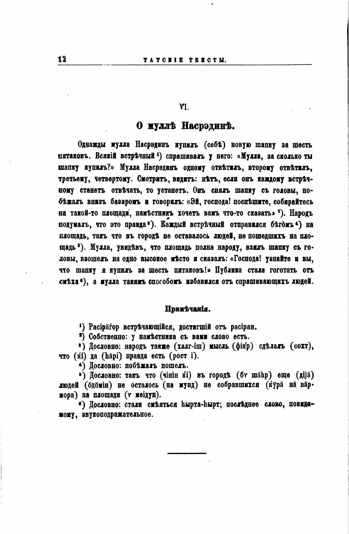 Однажды чиа Насрэдинъ купил (сеИ) новую шапку за шесть