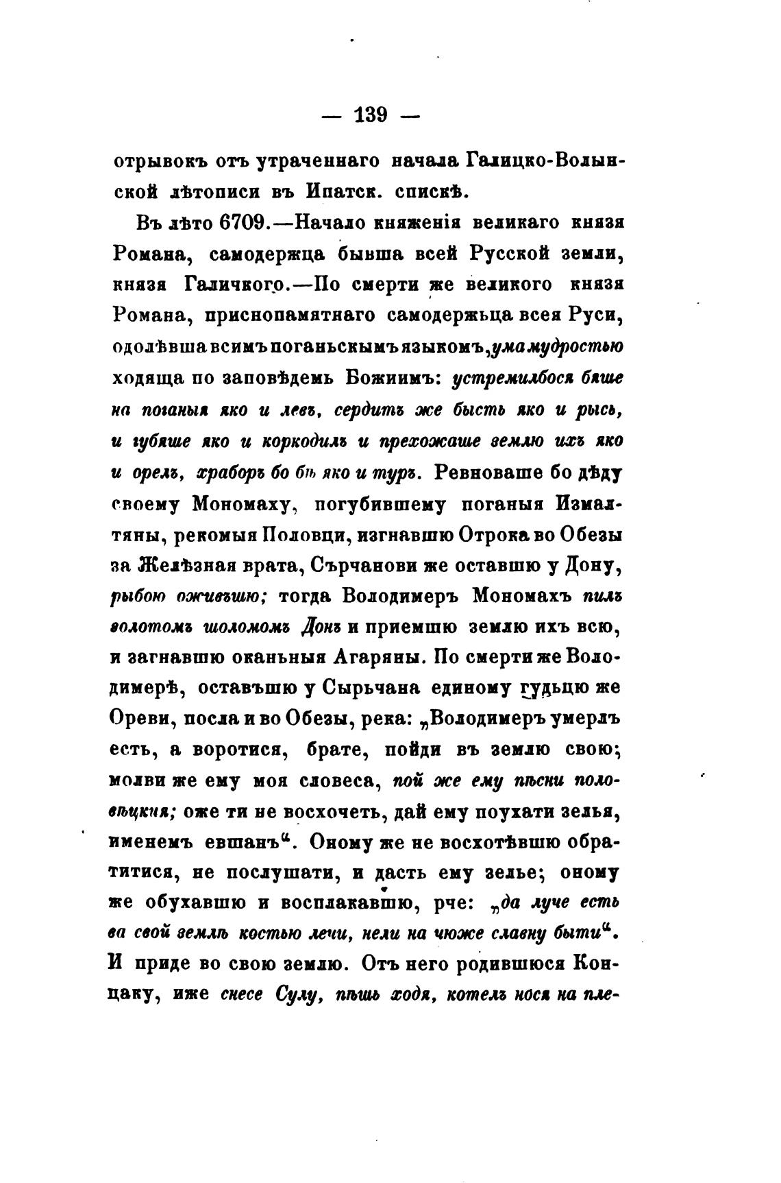 отрывокъ отъ утраченнаго начада Галицко- Волын-