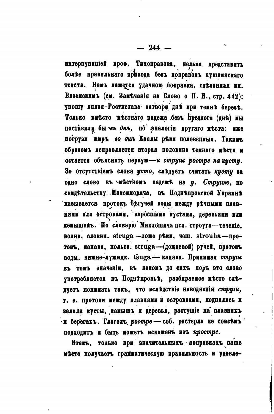 одно слово въ «Мстћомъ падеж• на у. Струою, по