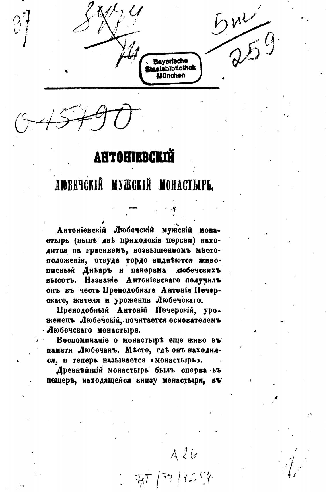 Любечскаго монастыря.