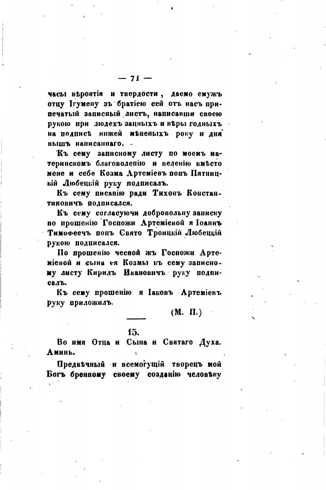 Кь сему согласуючи добровольну записку