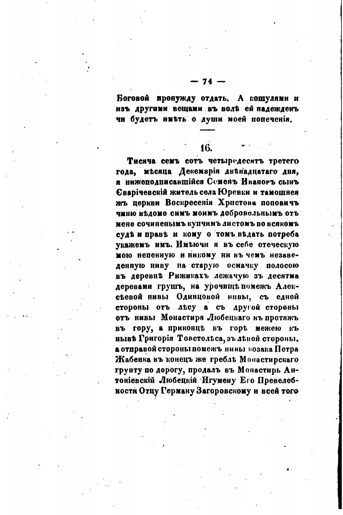 отъ нивы Монастиря Любецкаго нь протяжъ