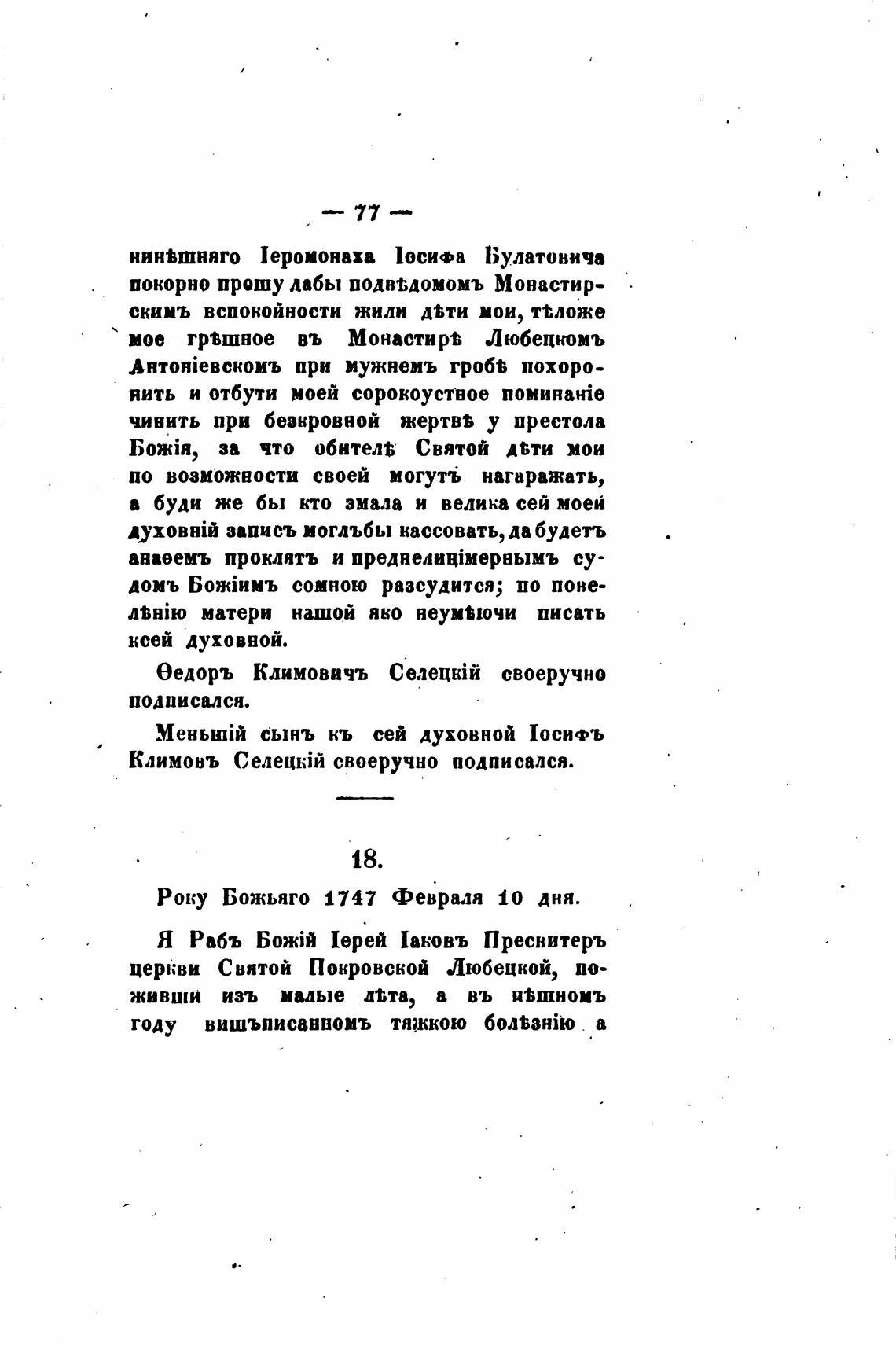 Климовъ СелецкЈй своеручно подписался.