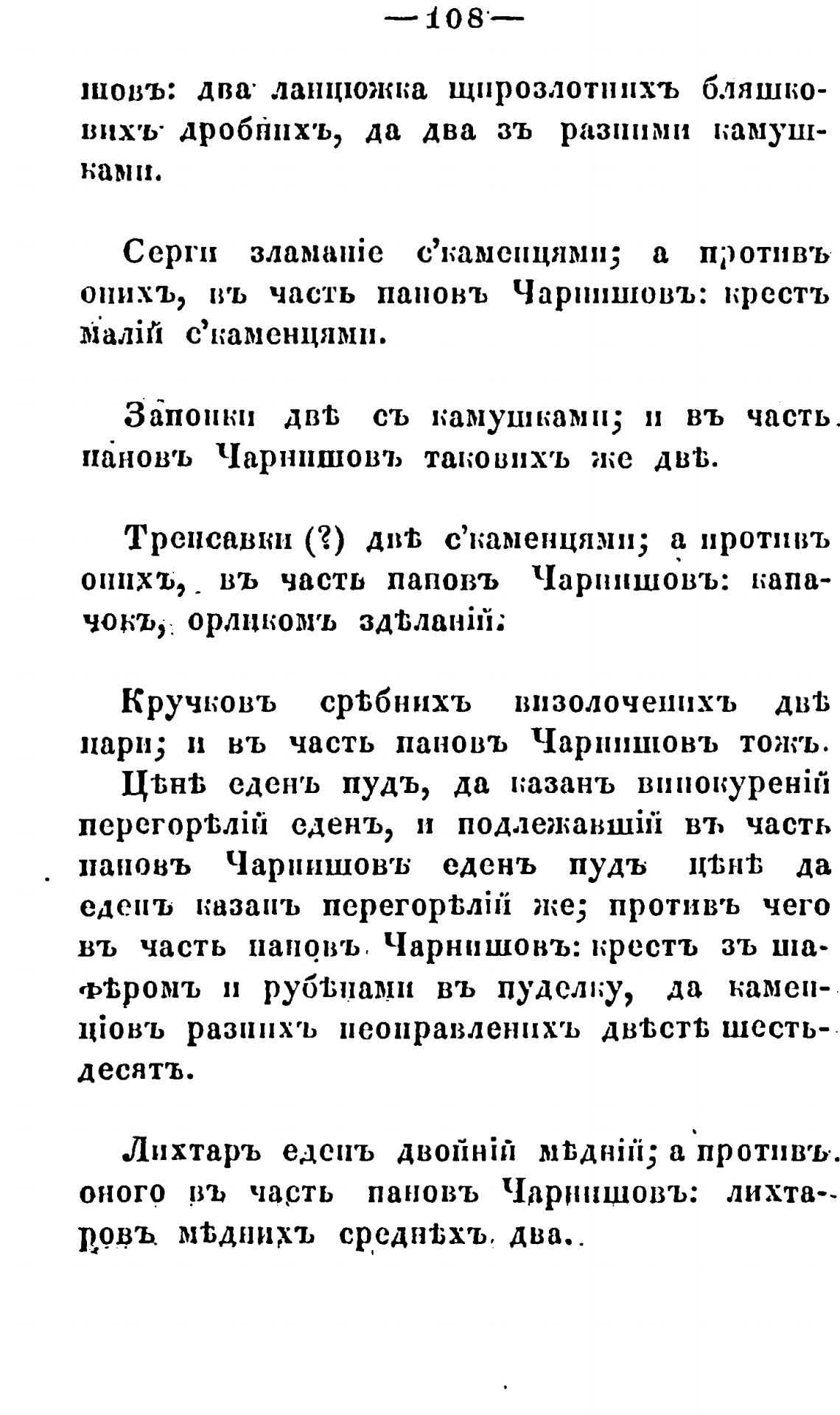 оного въ часть пановъ Чарннщовъ: лихта--