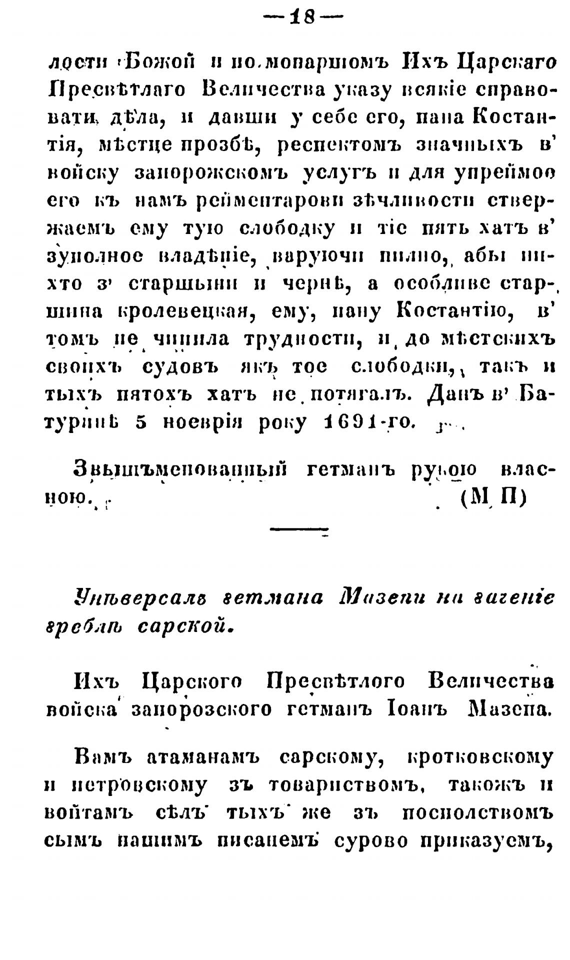 З вышъмепованный гетман ъ рукою влас-