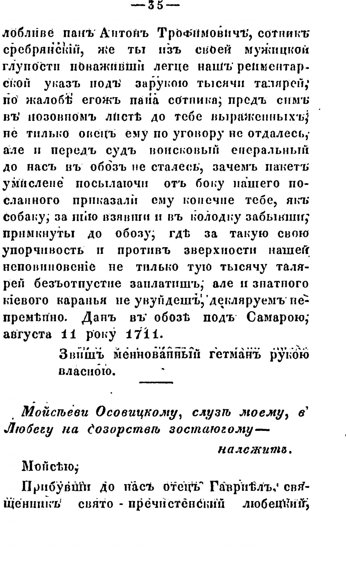 Звпшъ тен\овапный гетманъ рукою