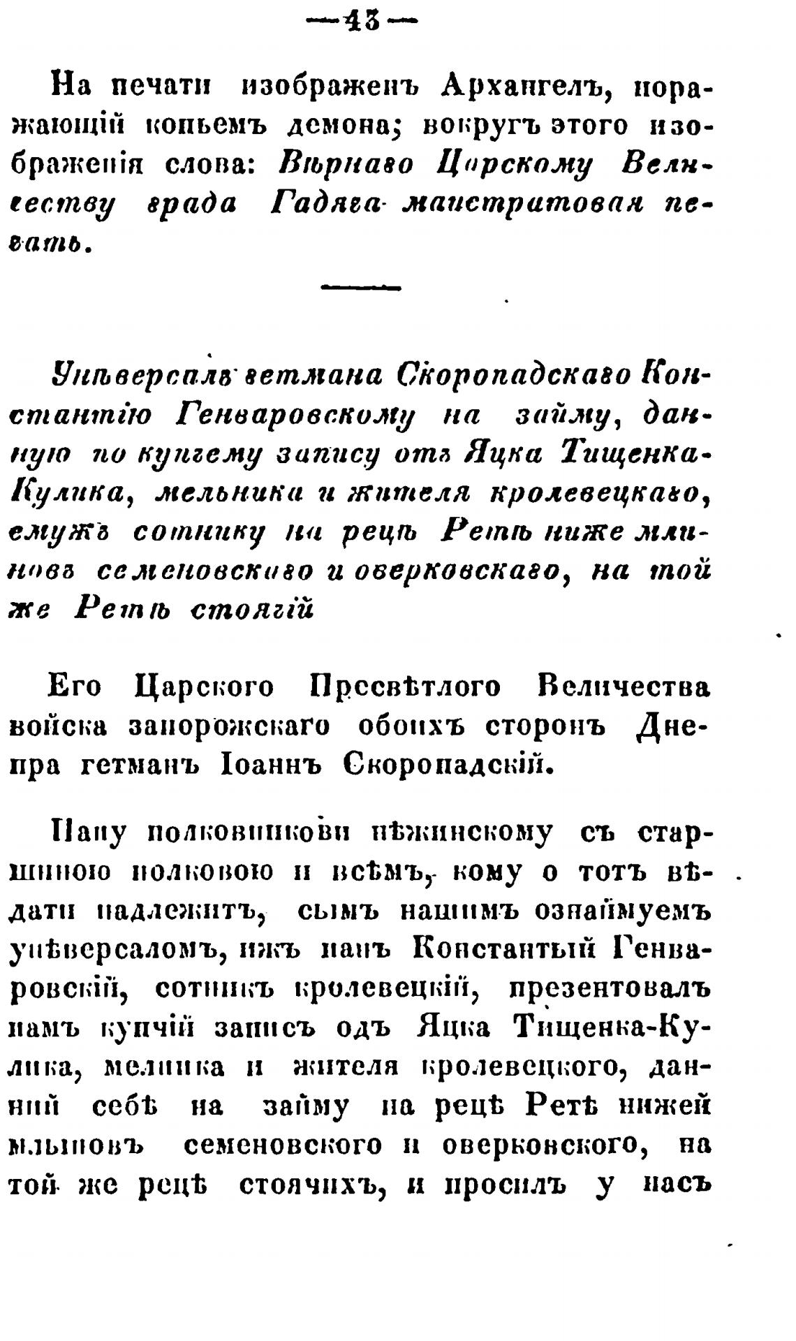 пра гетманъ Иоаннъ Скоропадскйђ.