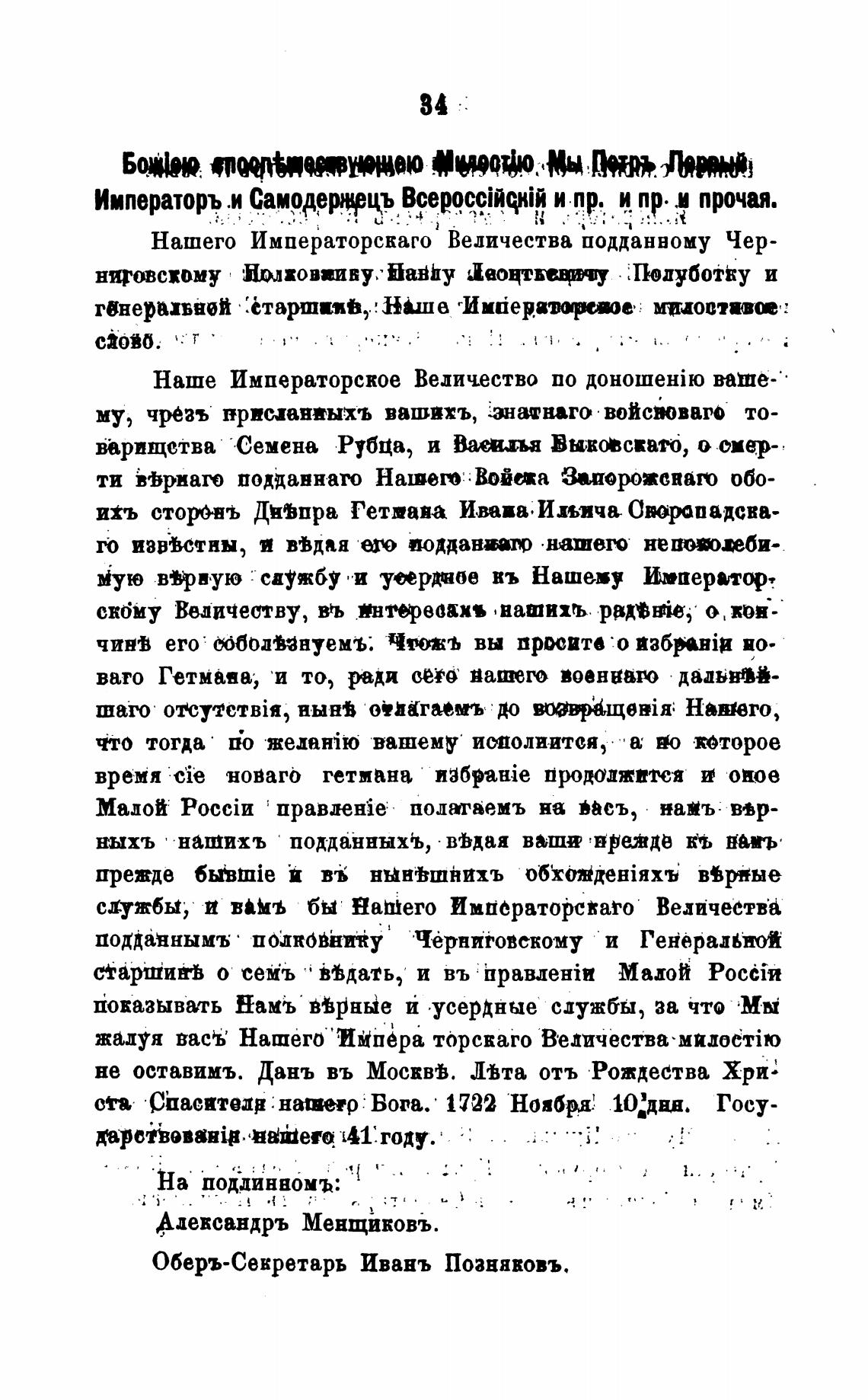 Оберъ-Секретарь Ивань Поанявовъ.