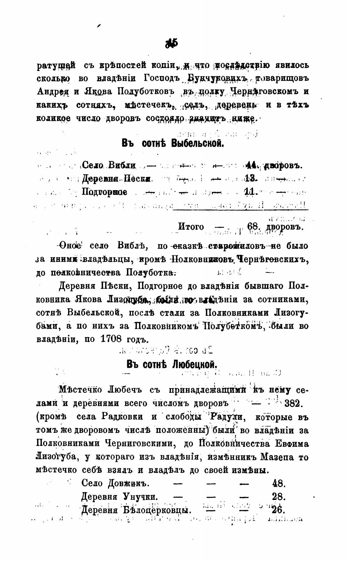 сотнв Выбедьской, посшВ стали за Полковниками Лизогу-