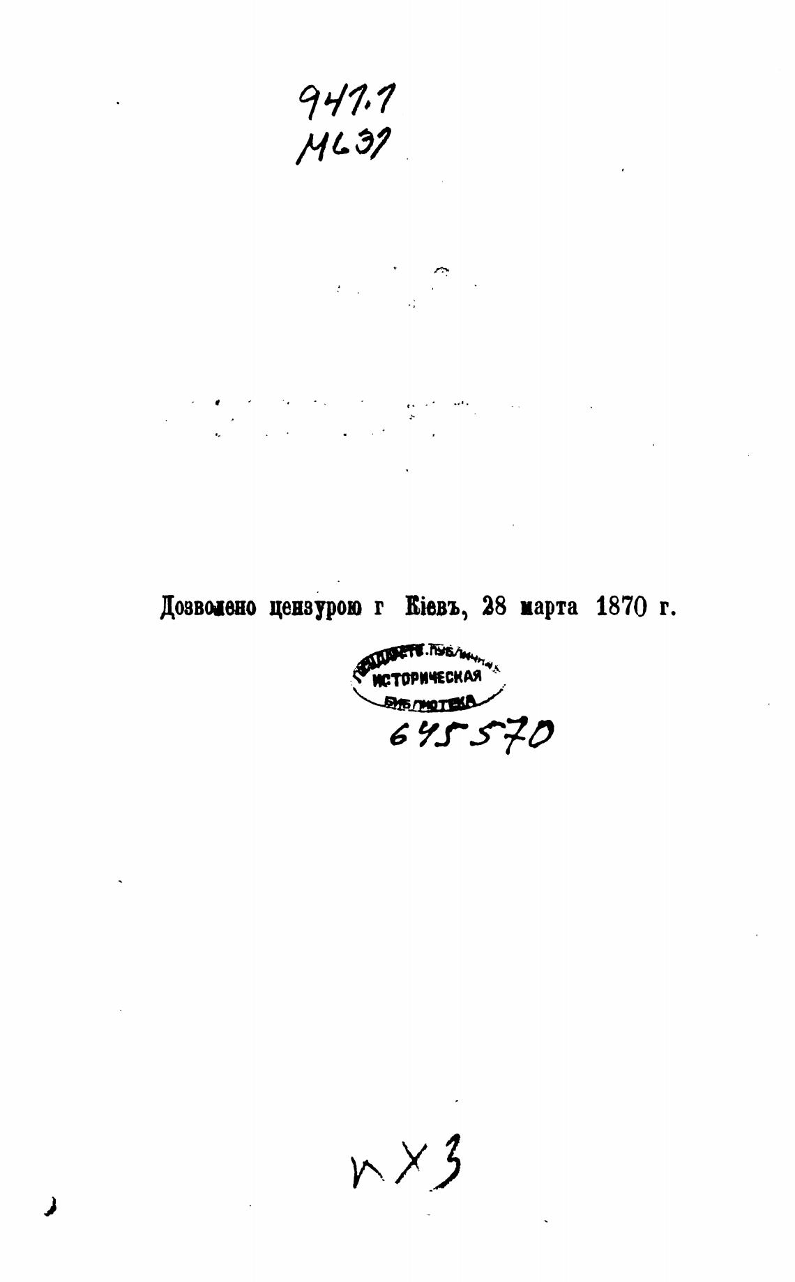 Доввнено цензурою г Юевъ, 28 марта 1870 г.