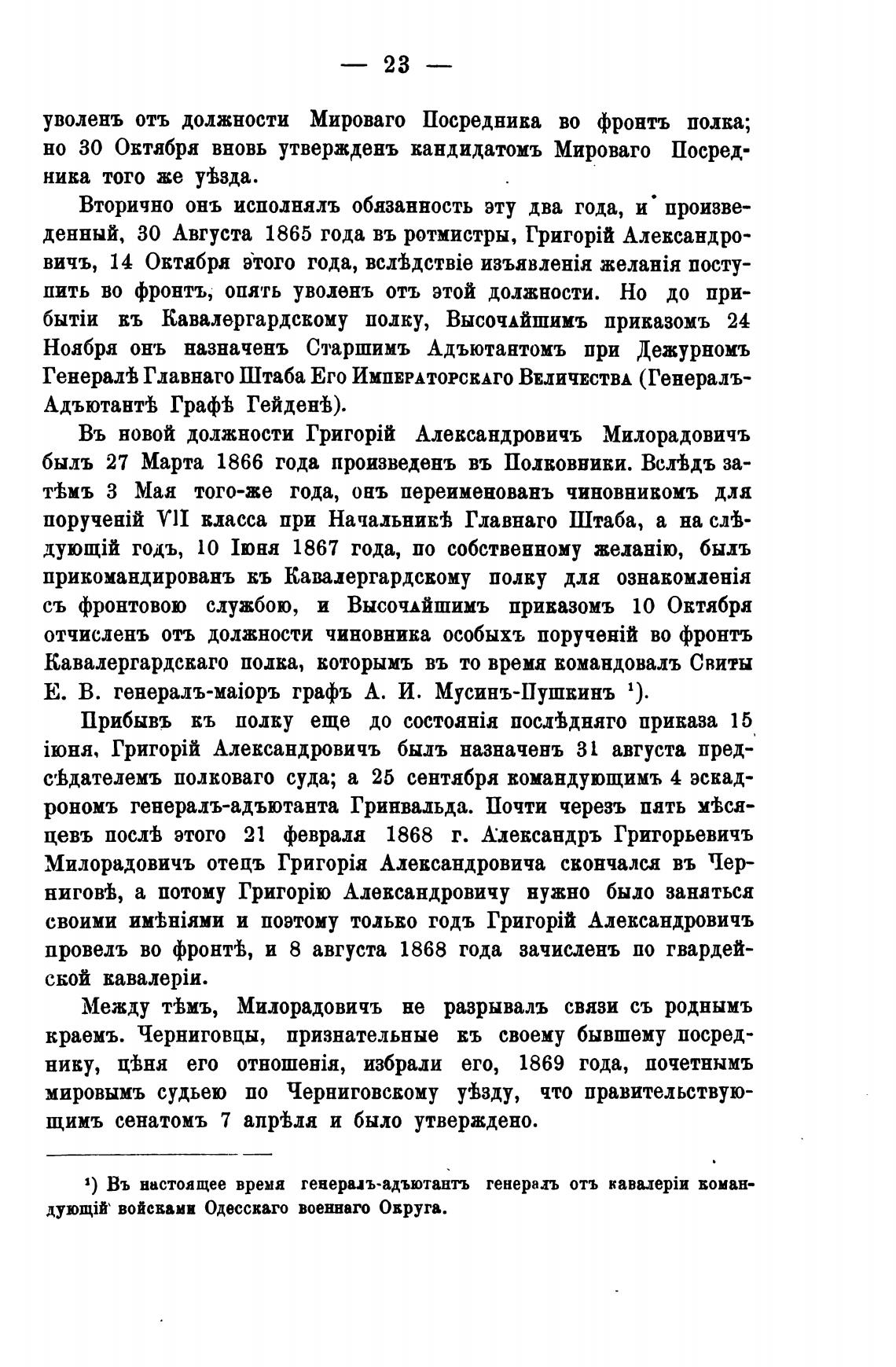 Въ новой должности Александровичъ Милорадовичъ