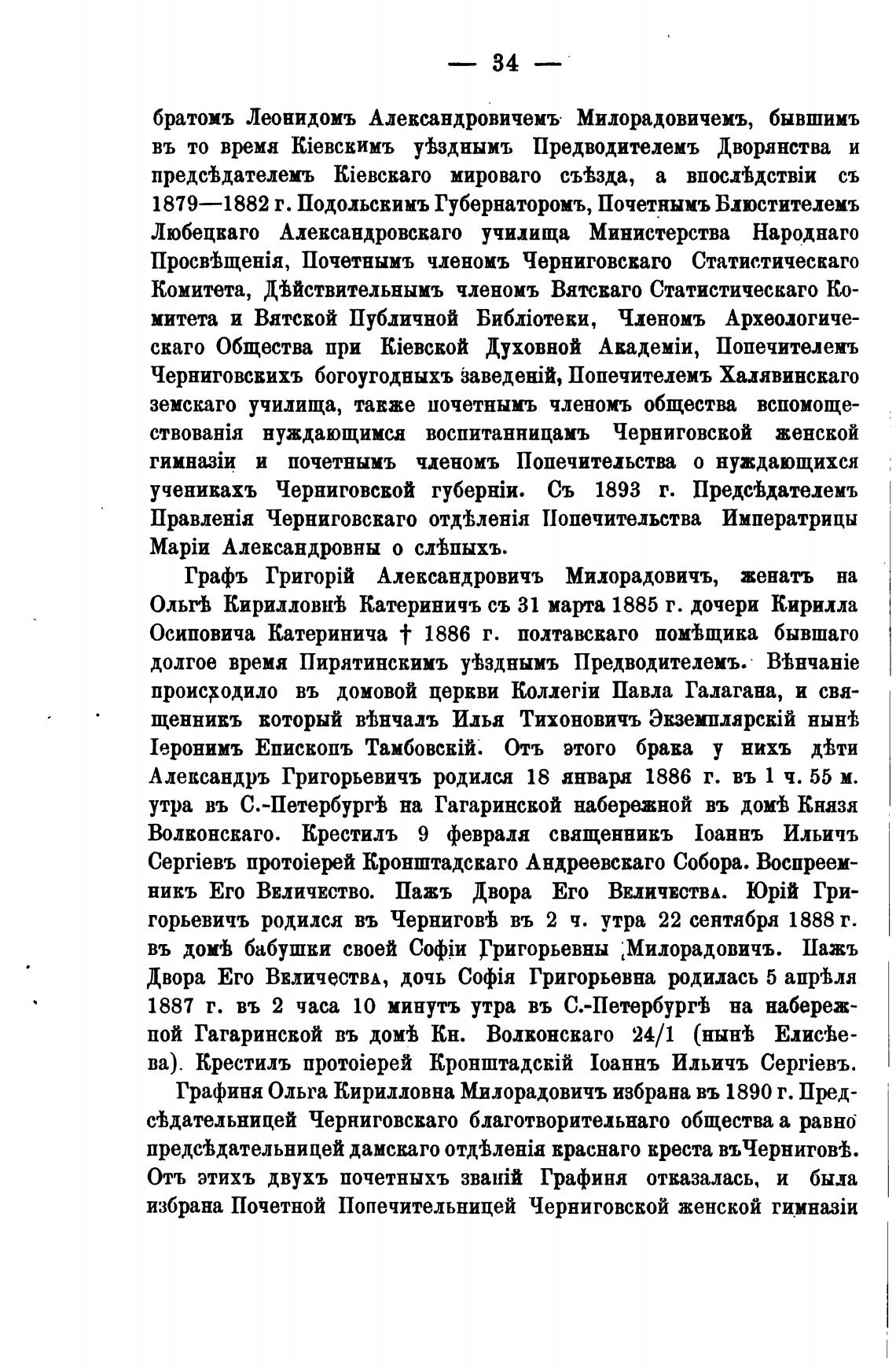 Графъ Александровичъ Милорадовичъ, женатъ на