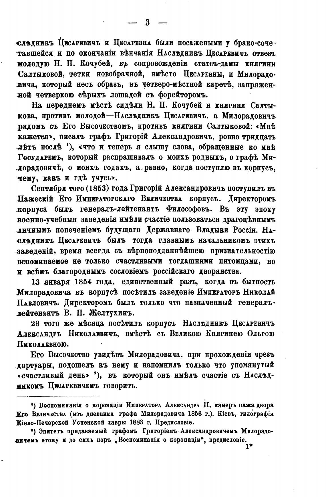 Его ВЕЛИЧЕСТВА (изъ дневника графа Милорадовича 1856 г.). kieBb, тидографВ1