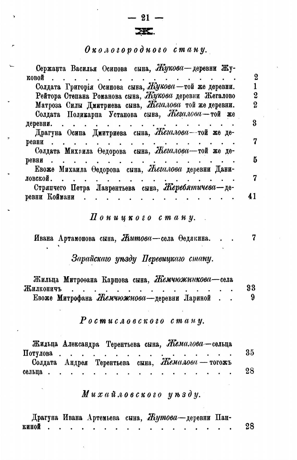 Рейтора Степана Романова сына, Жукова деревни Жегалово