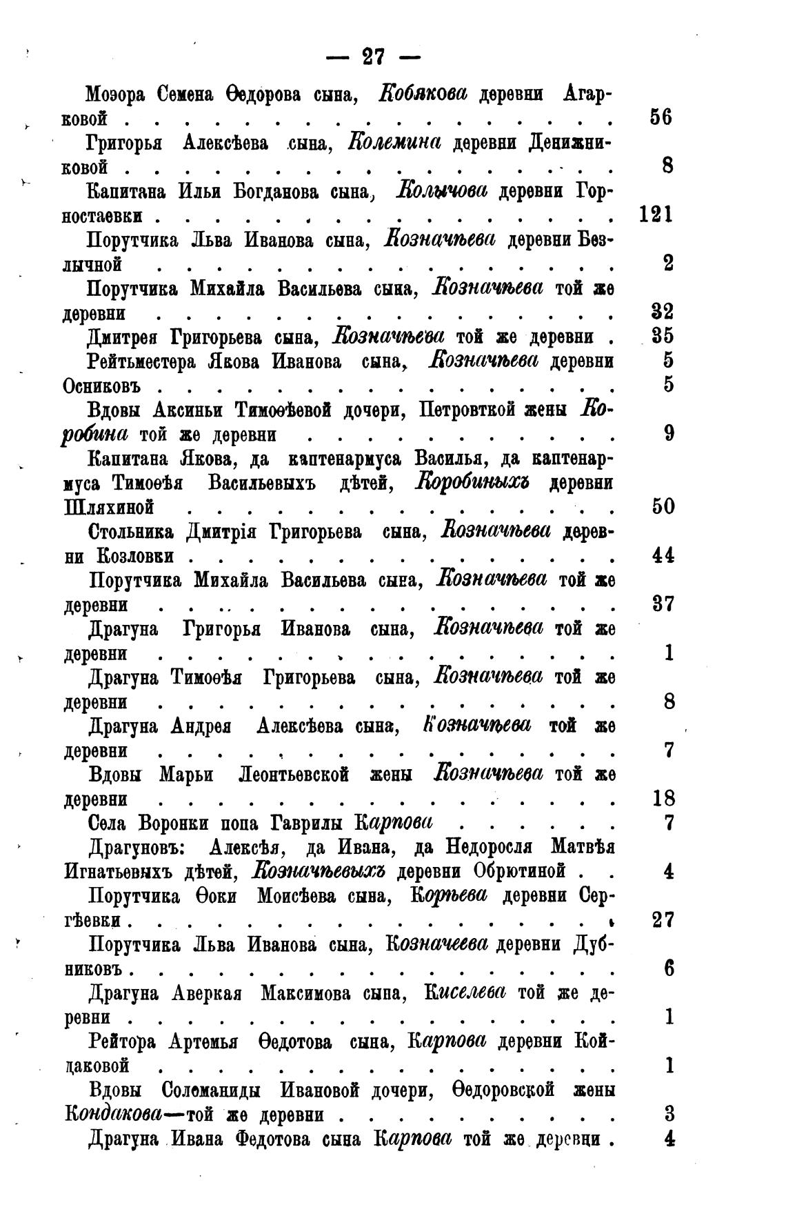 Порутчика Льва Иванова сына, Козначеева деревни Дуб-