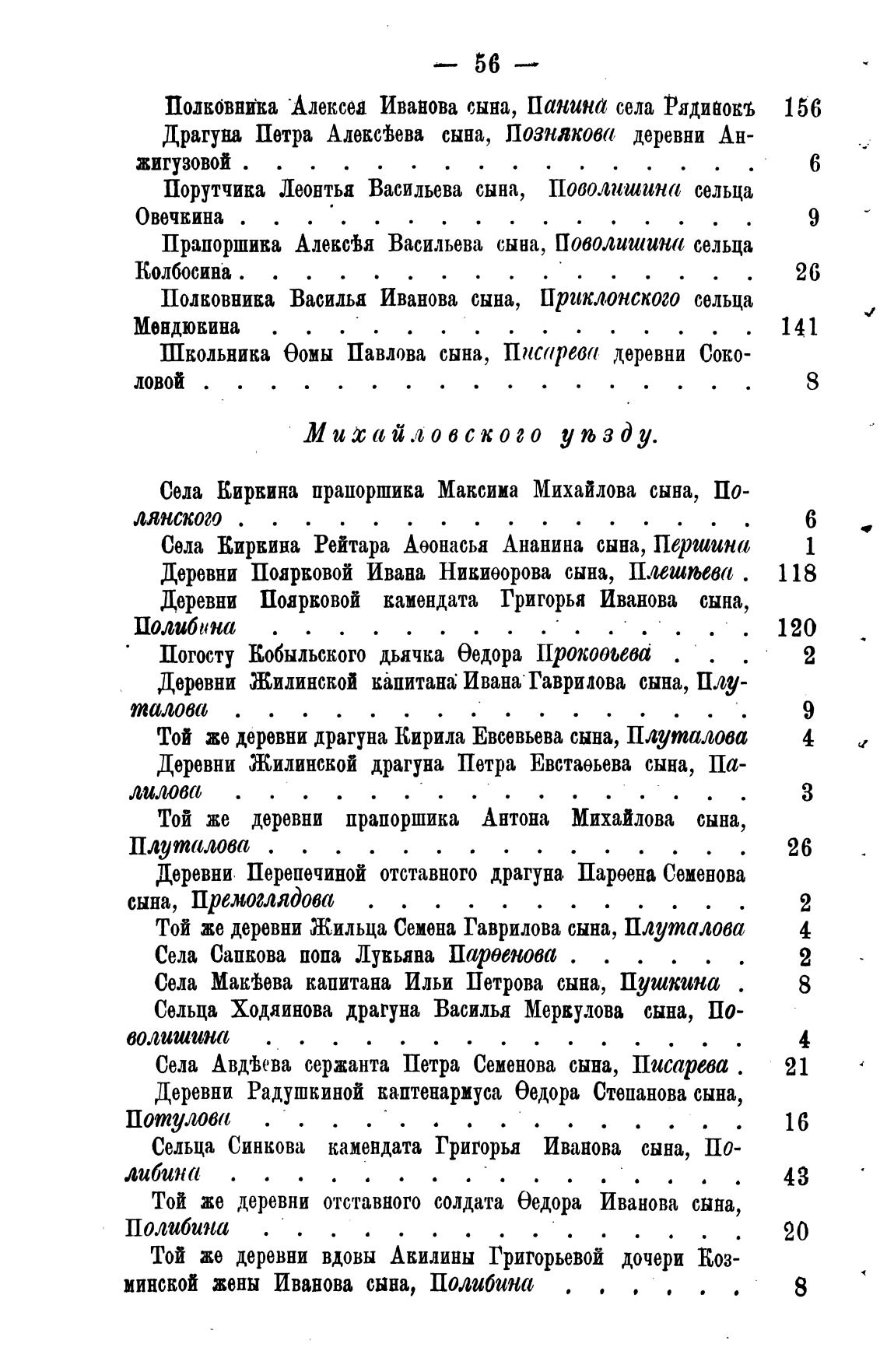 Деревни Поярковой Ивана Никиоорова сына, Плешљева .