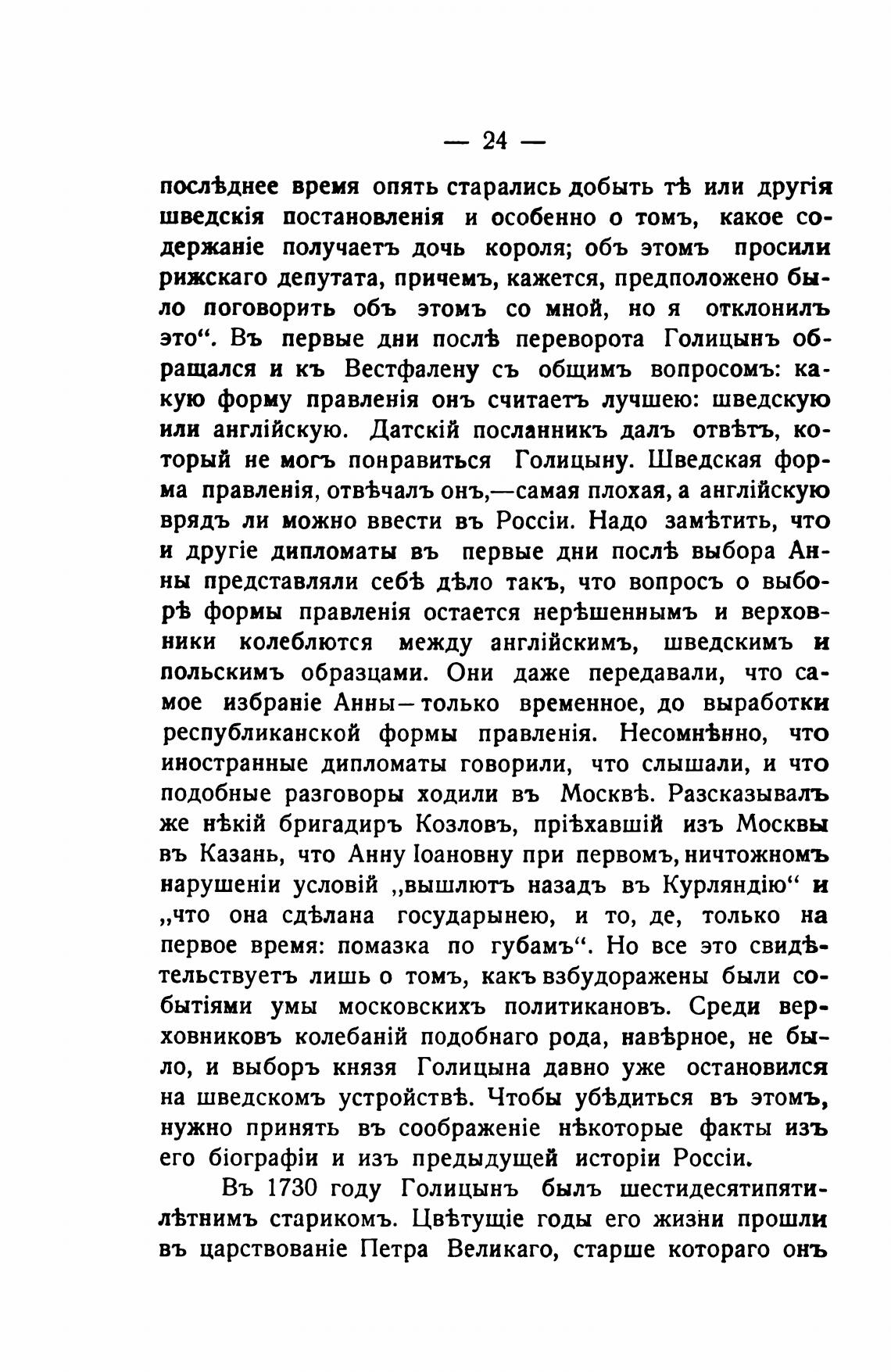 торый не могъ понравиться Голицыну. Шведская фор-