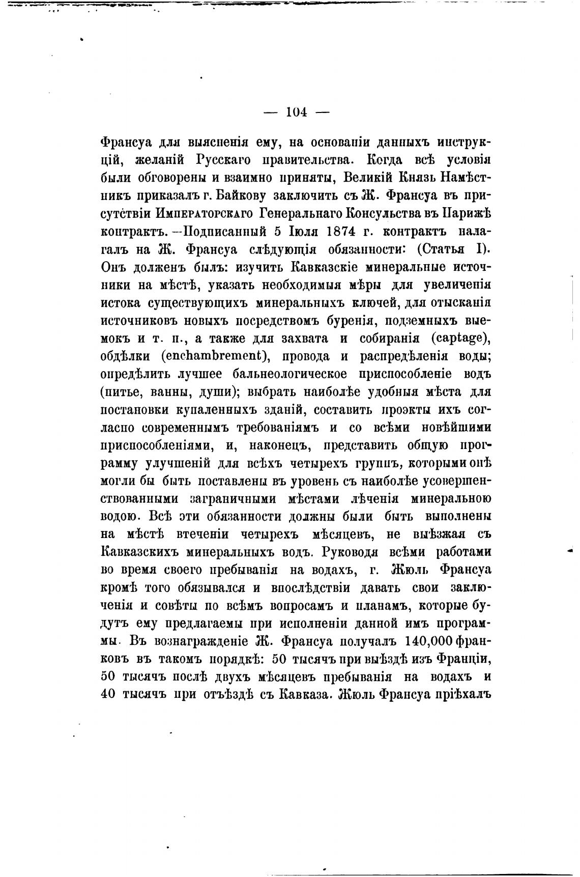 контрактъ. —Подписанный 5 1юлл 1874 г. контрактъ нала-