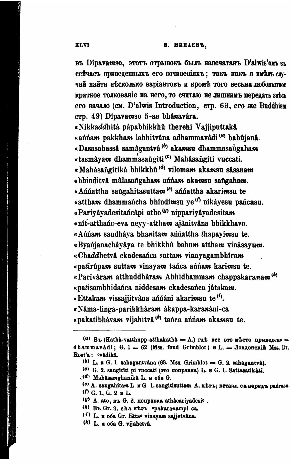 dhammavAdi; G. 1 = 62 (Мн. fond Grimblot) и Ь. = Ловдонскш MN.Dr.