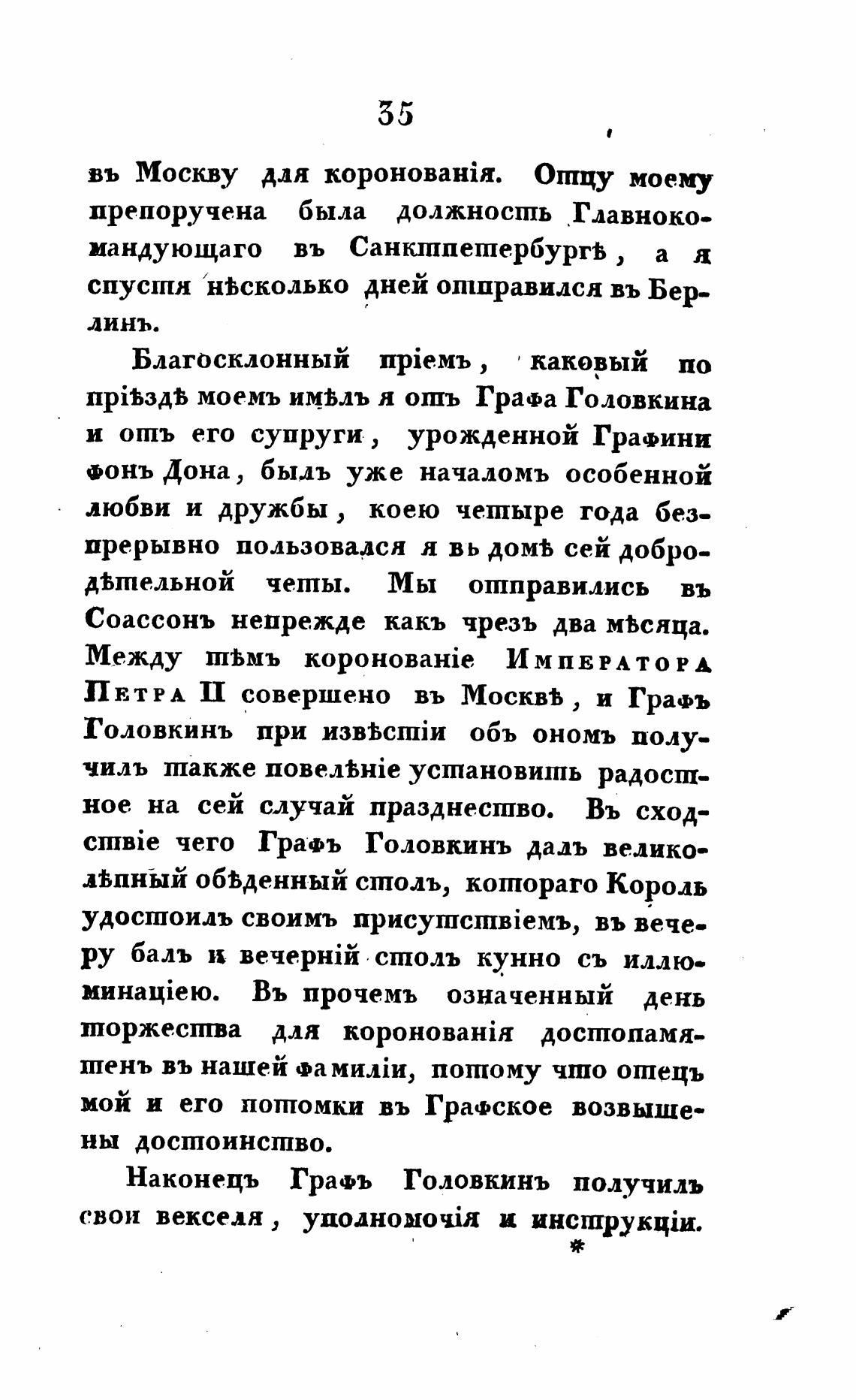 прЊздћ моемъ имьлъ я ошъ Графа Головкина