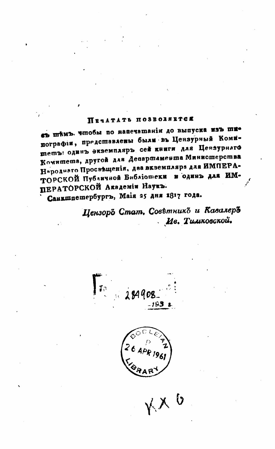теть: одинъ экземпляръ сей ввиги для Цендурнаго