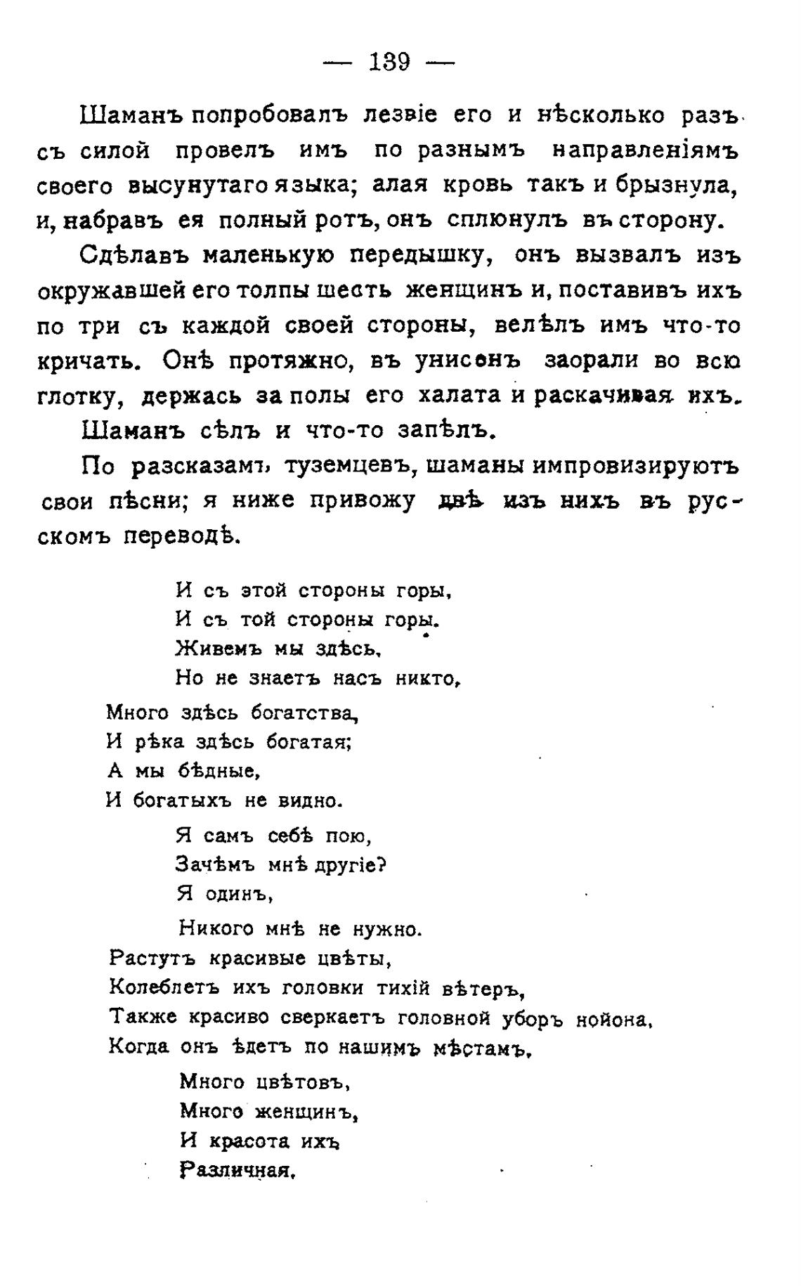 свои пЬсни; я ниже привожу изъ нихъ въ рус-