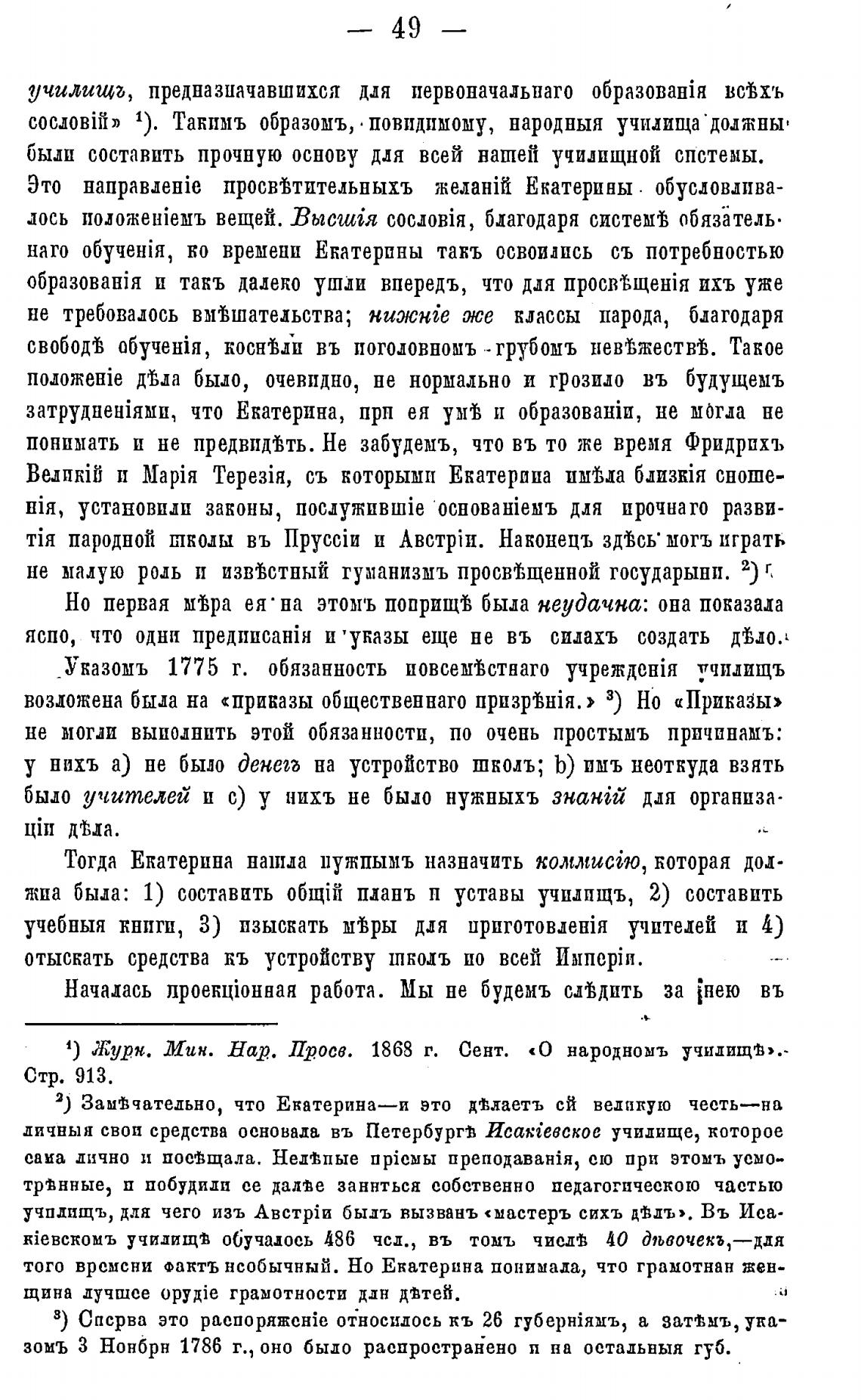 не малую роль и извотный гуманизмъ просвт;щенной государыни. 2) г