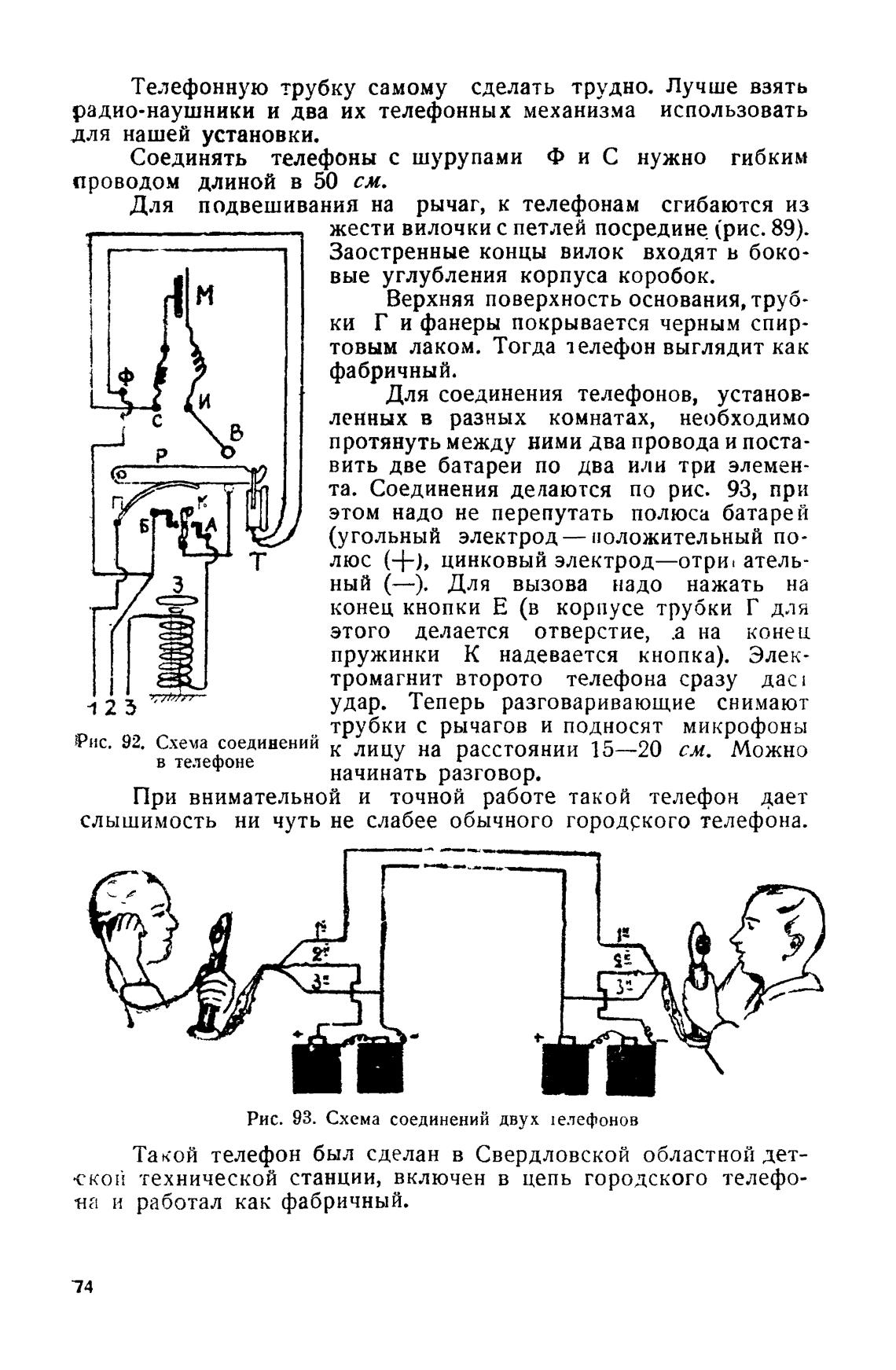 Рис. 93. Схема соединений двух !е.лефонов