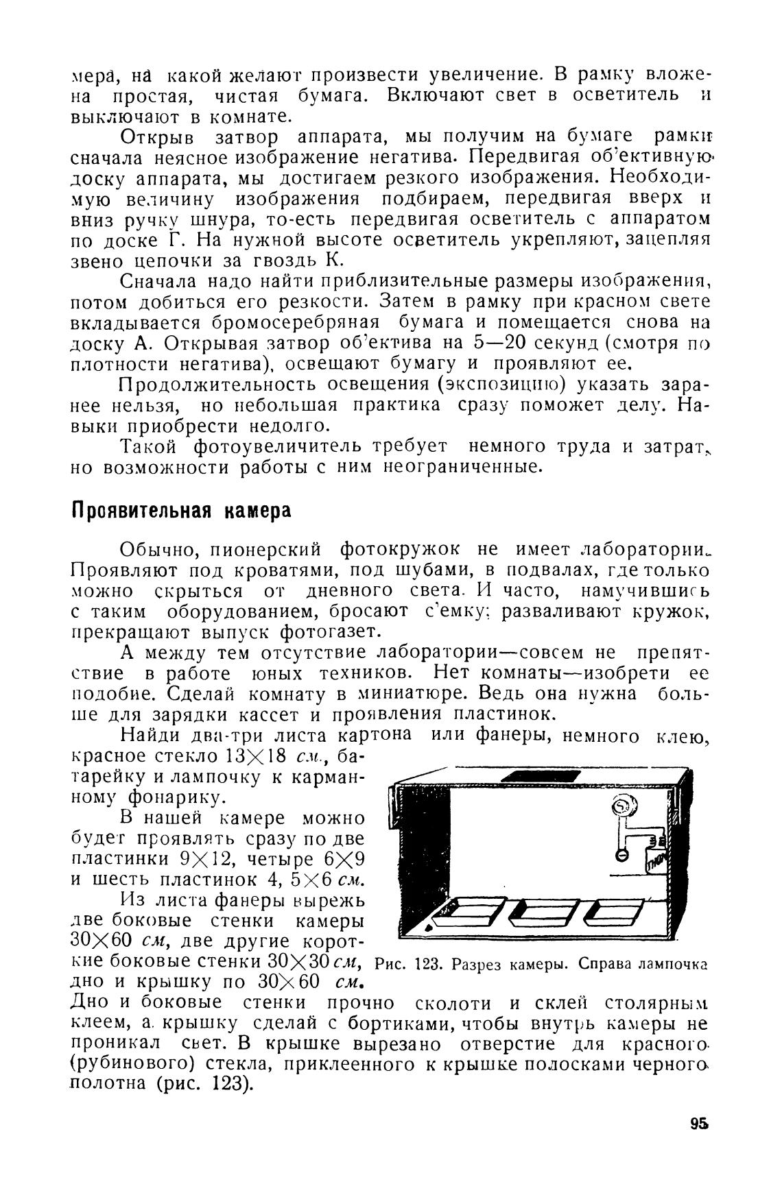 кие боковые стенки ЗОХЗО см, Рис. 123. Разрез камеры. Справа лампочка