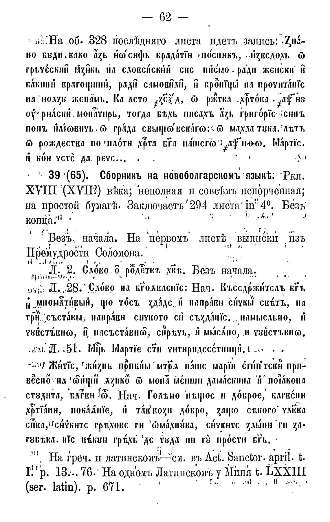 39 '(65). Сборникъ на нбвоболгарскомъ • язык%; •Ркп.