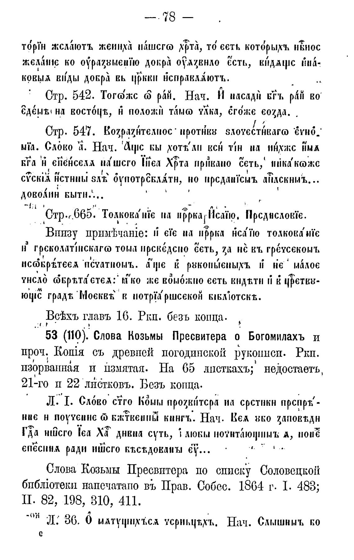 53 (110). Слова Нозьмы Пресвитера о Богомилахъ и