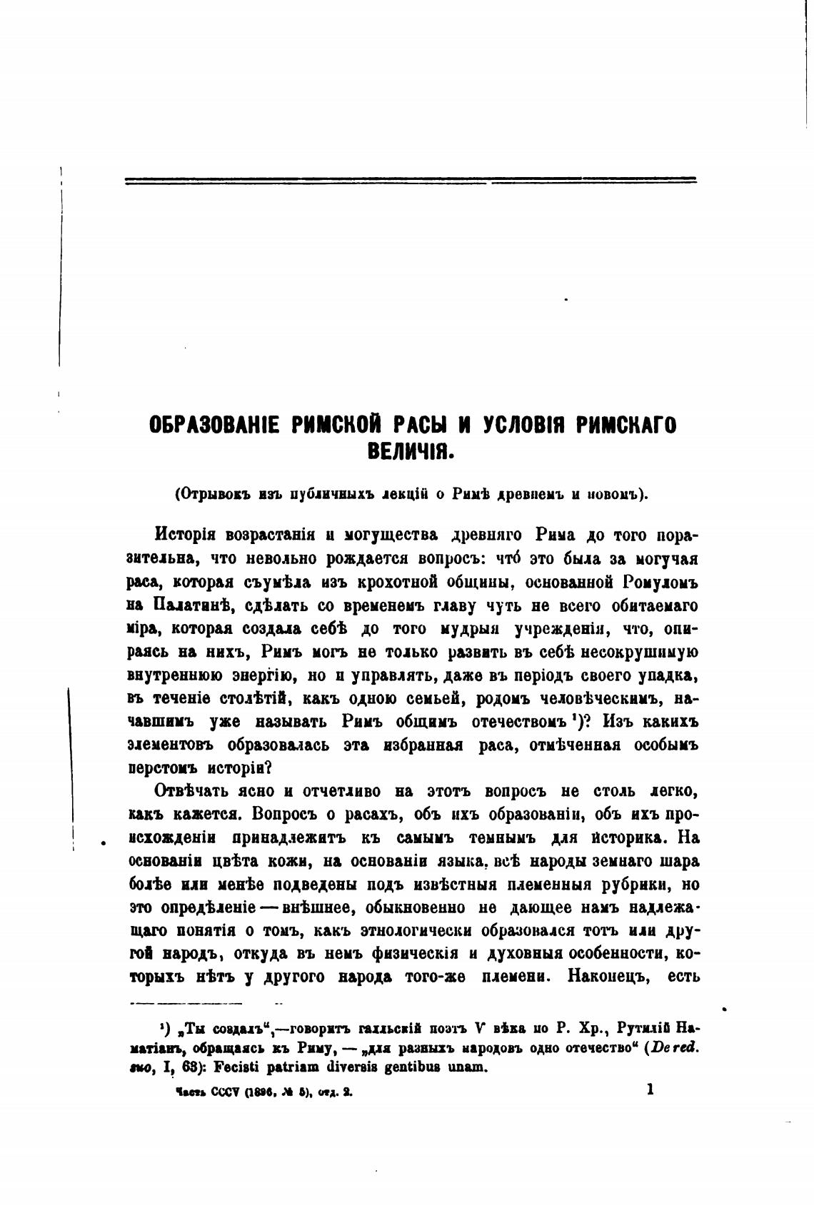 (Отрывовъ изъ пубјичныхъ лекцјй о Рим± древпенъ и новомъ).