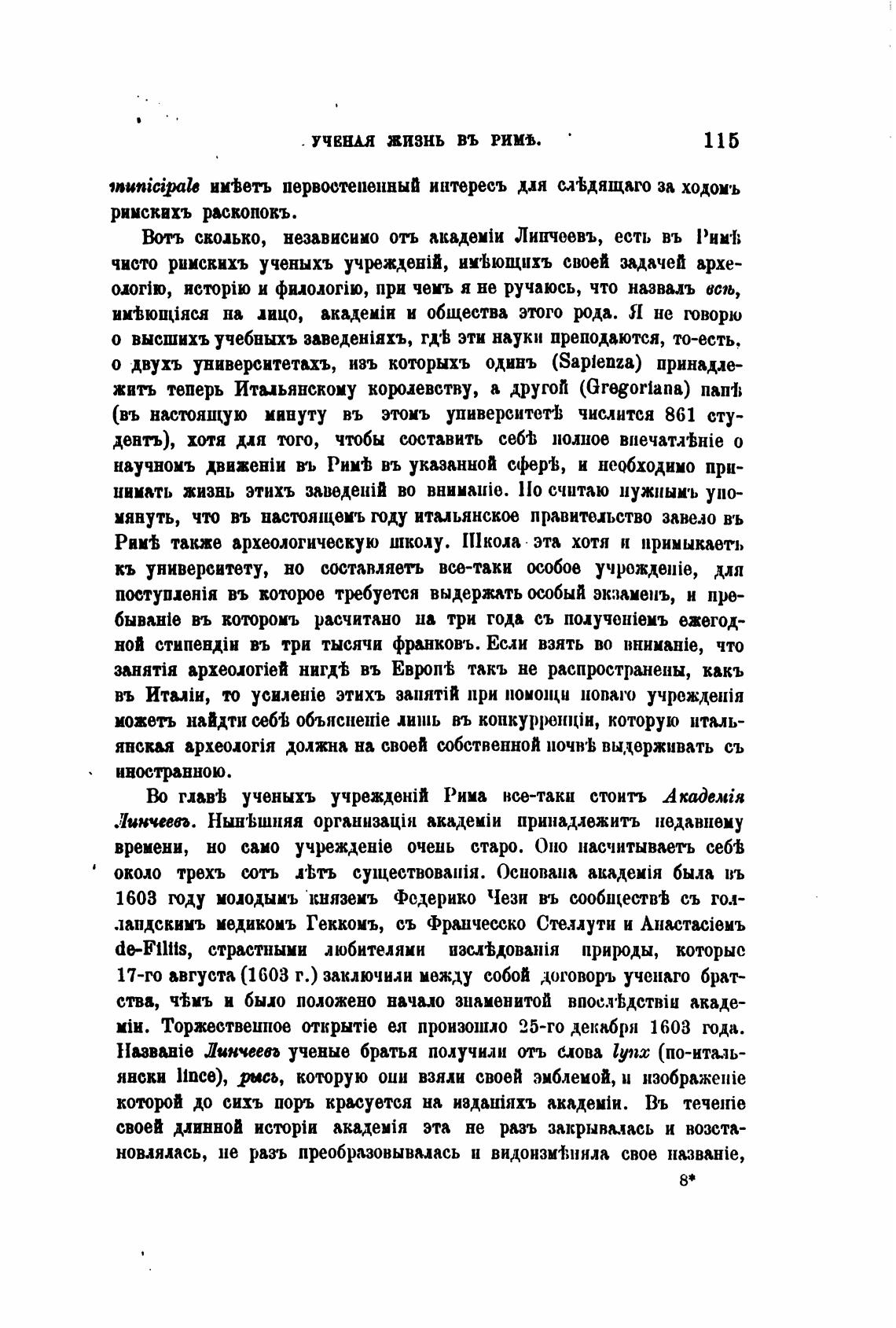 глав'Ь ученыхъ учрежденјй Рима все-таки стоить