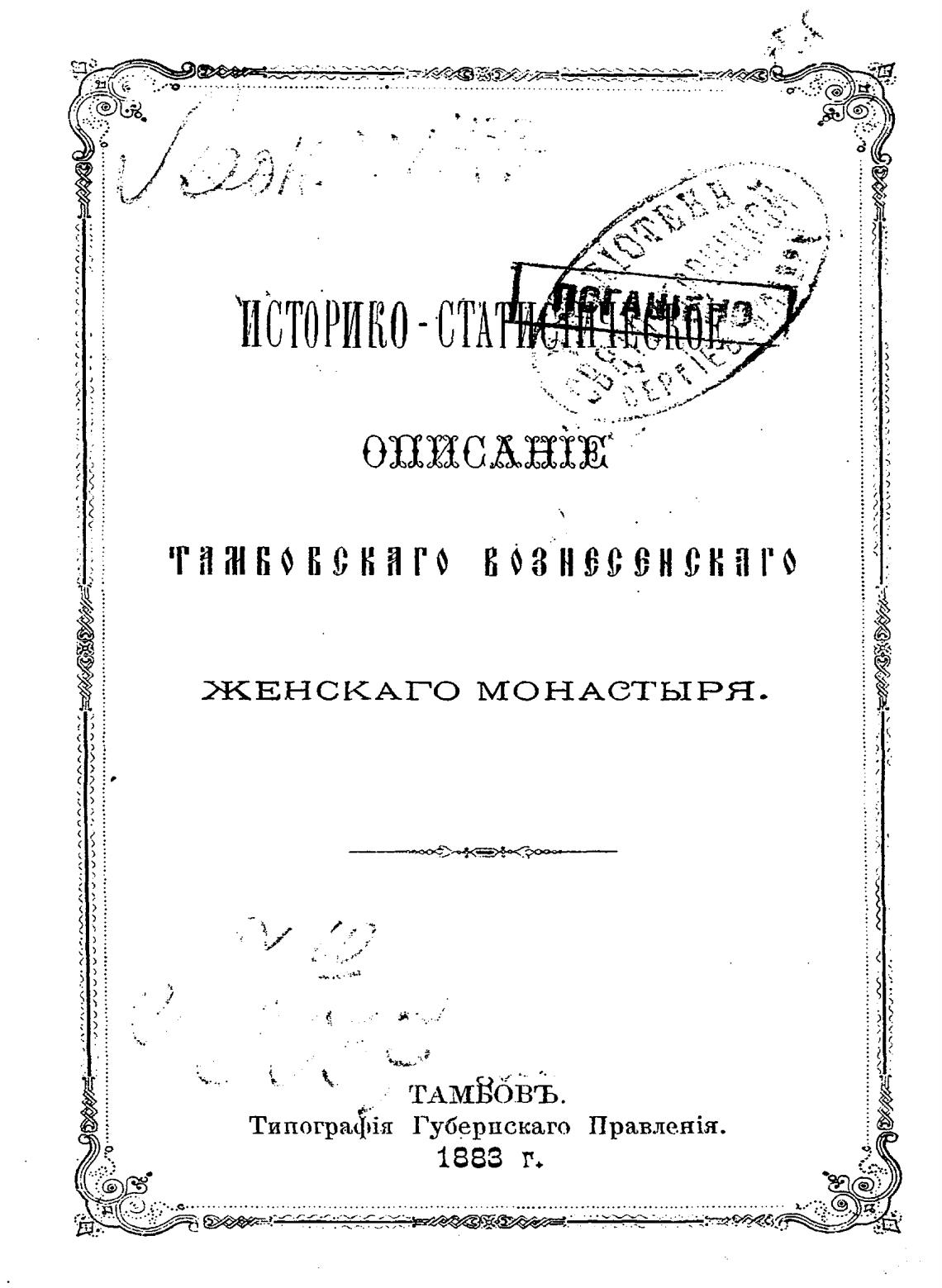 Историко-статистическое описание Тамбовского Вознесенского женского монастыря. - Молчанов Н.
