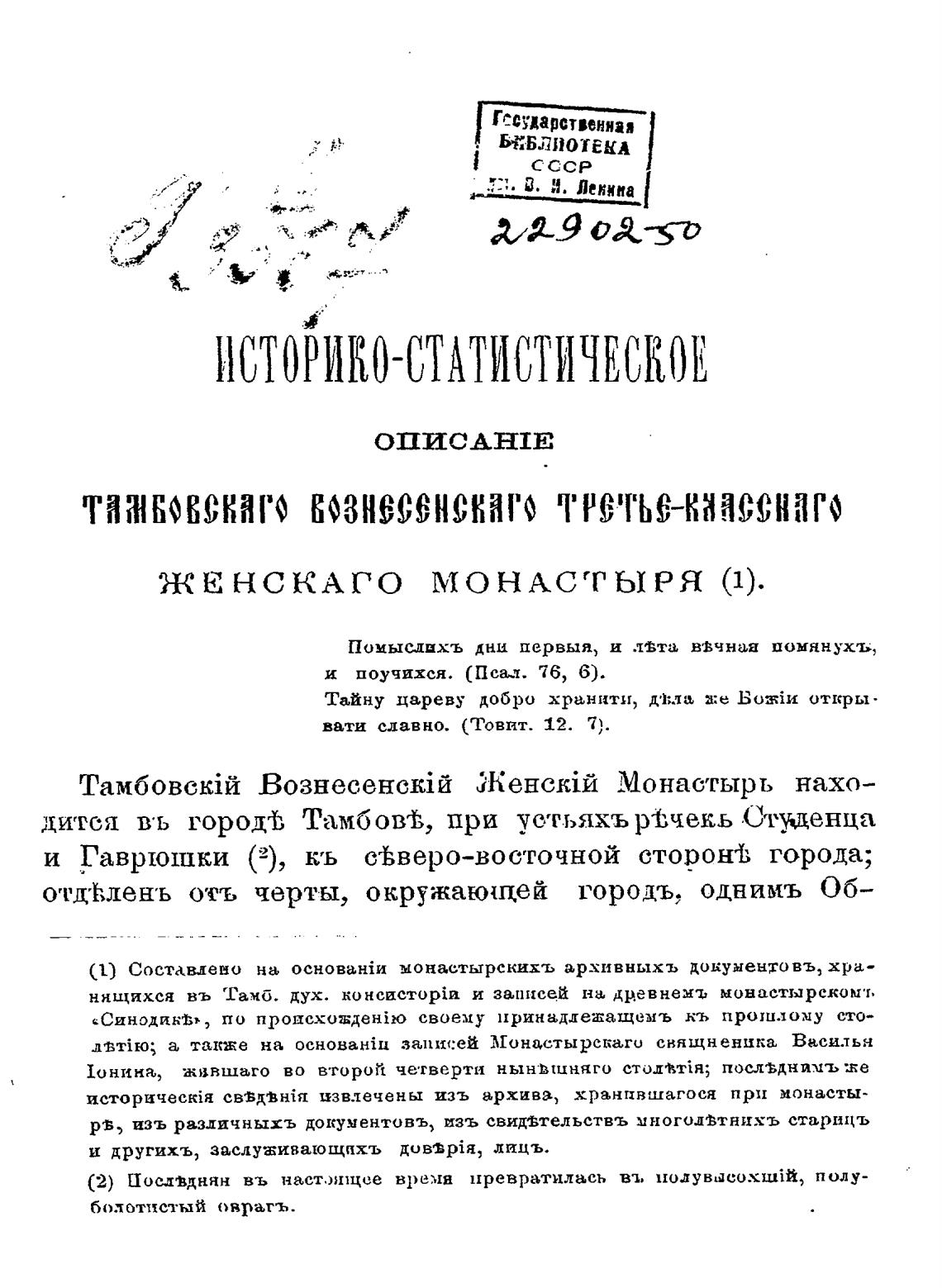 (1) Составлено на монастырских•ь архивныхъ документо въ, хра—