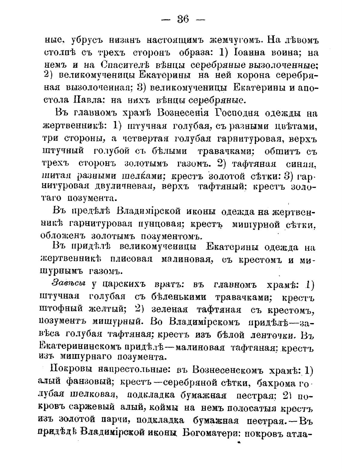Покровы напрестольные: въ Вознесенскомъ xpaMi;.• 1)