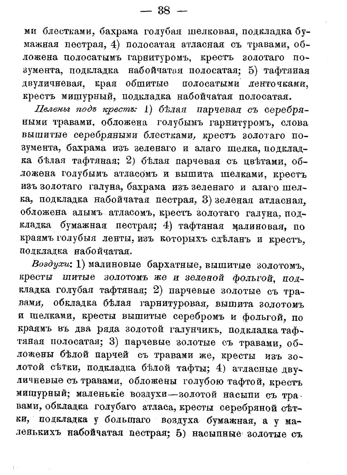 и шелками, кресты вышитые серебромъ и фольгой, по
