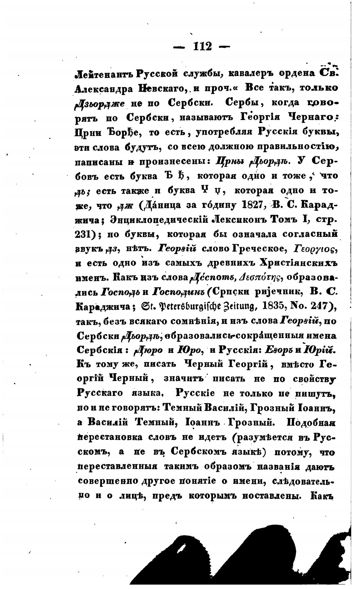 Караджича; Et. S)eter66urgiWe 3eitung, 1835, No. 247),