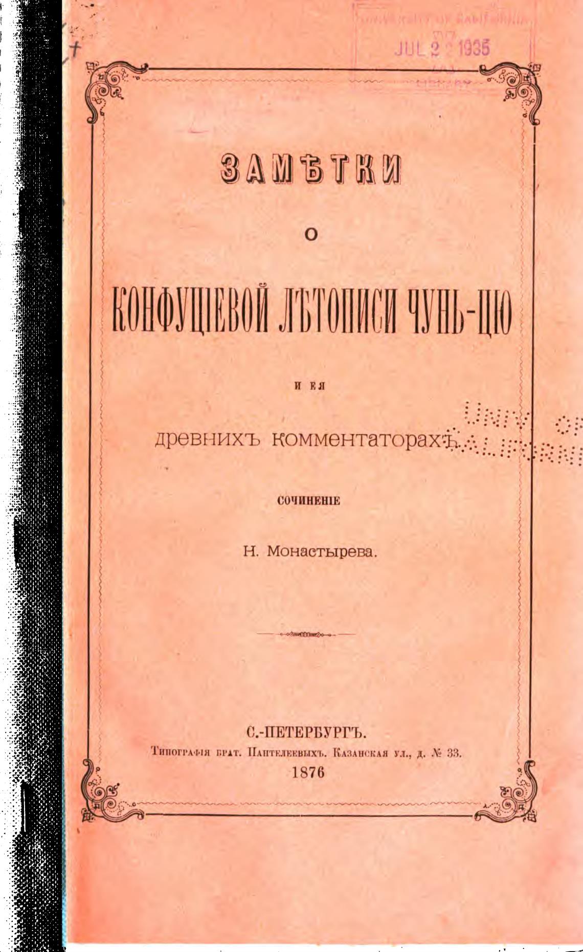 Типогт•м.тя Т;ПТ. ПАНТЕЛЕЕВЫХ'Ь. КАЗАНСКАЯ ул., Д. Х 33.