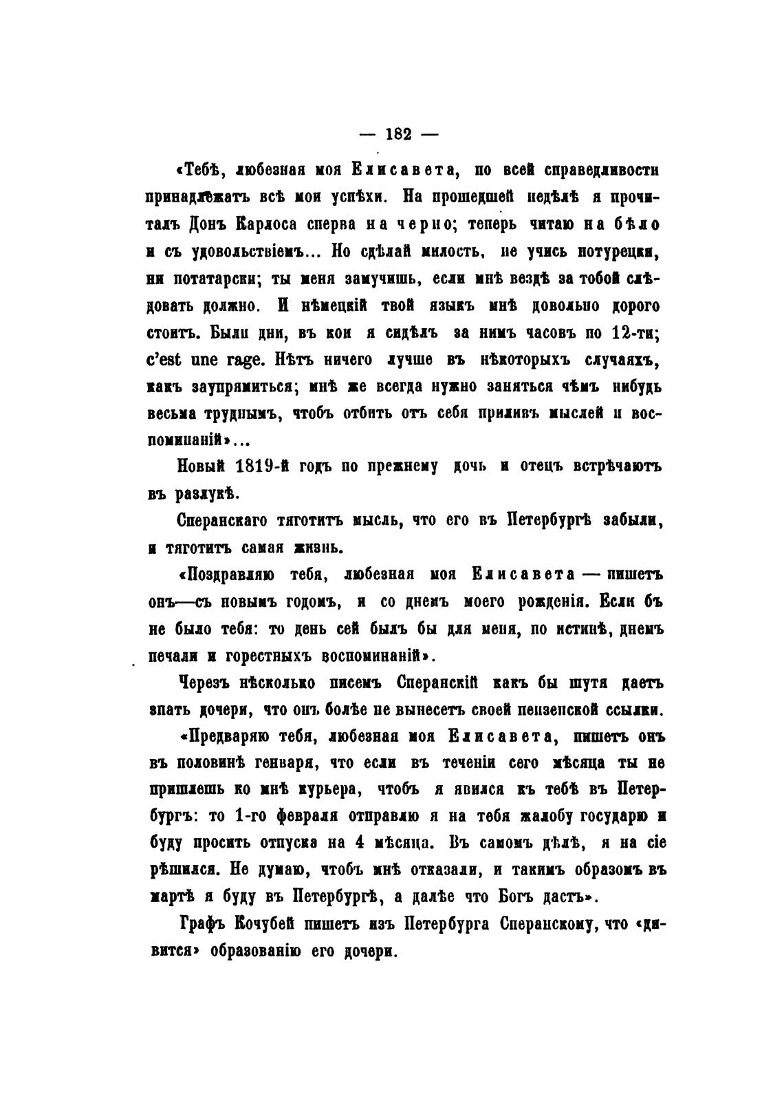 Графъ Кочубей пишетъ изъ Петербурга Сперанскому, что «ди-