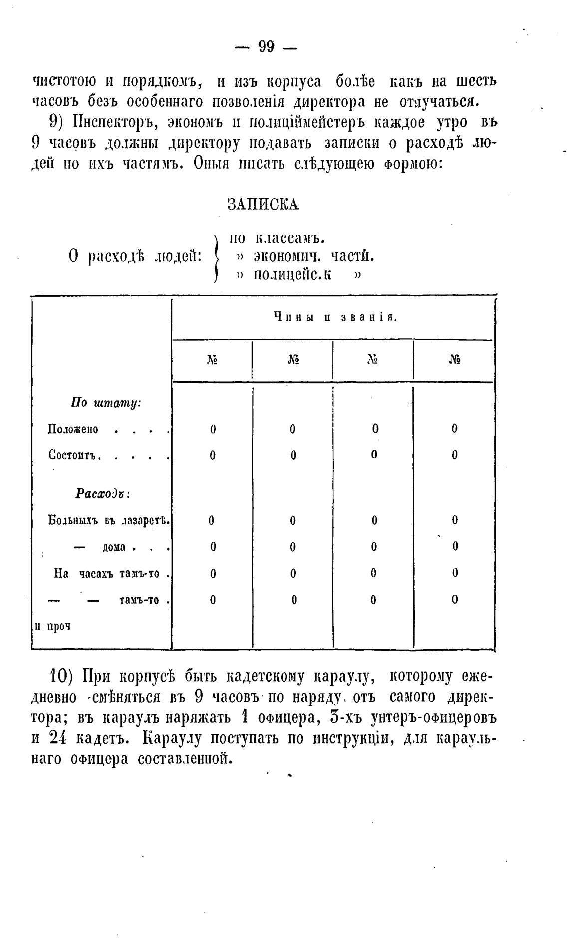 10) При корпуск быть кадетскому караулу, которому еже-