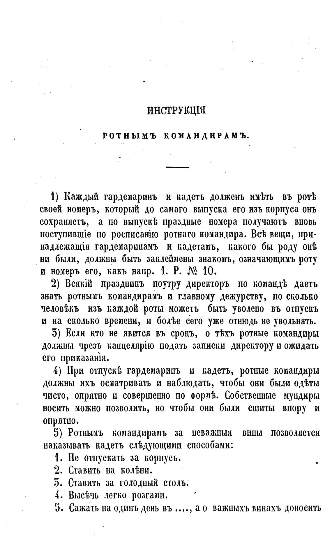 1) Каждый гардемаринъ и кадетъ долженъ им#гь въ ротв