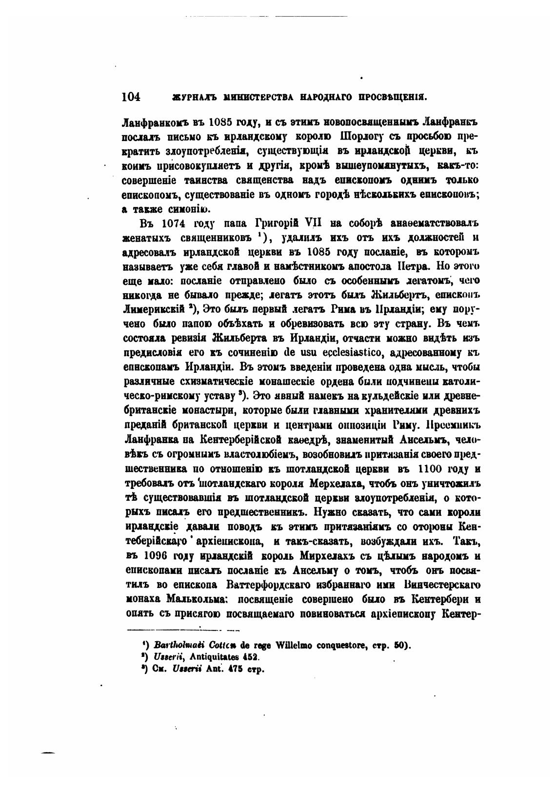 адресоваль ирландской церкви въ 1085 году uoc-BHie, въ вото[юмъ