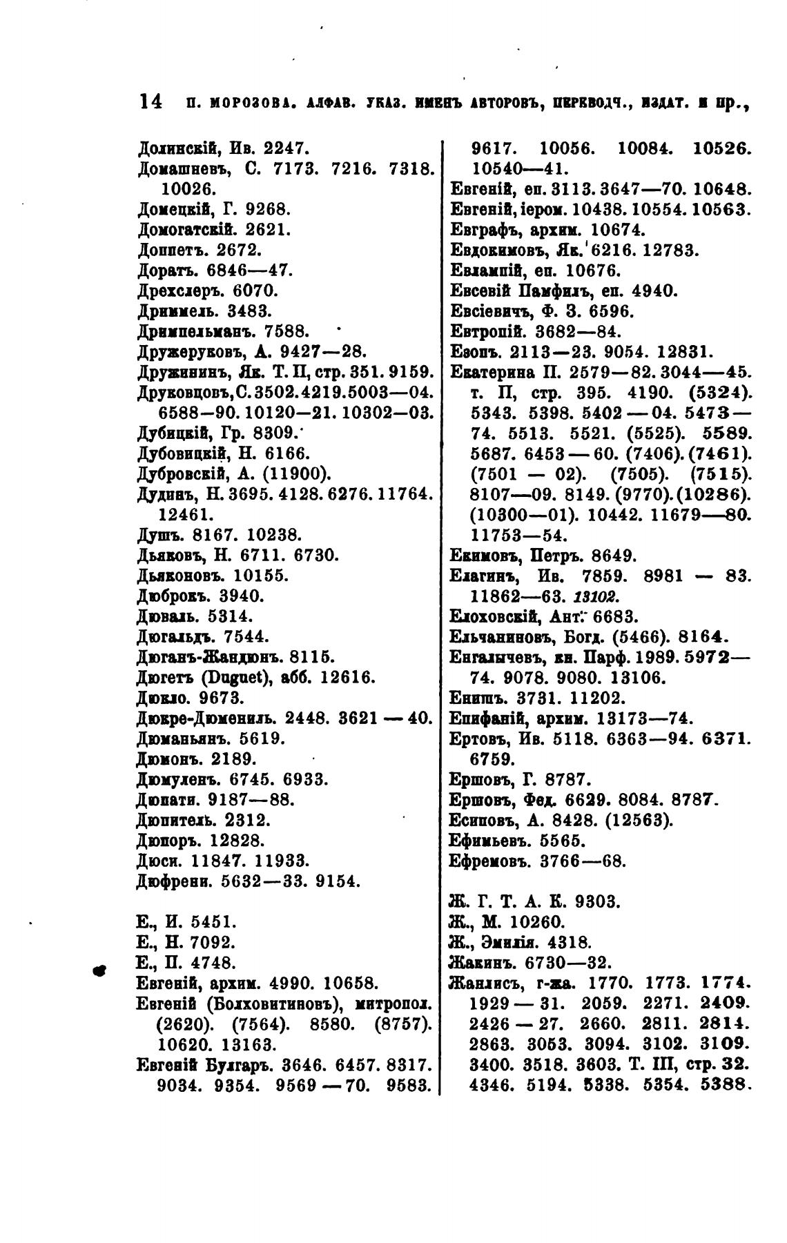 14 П. МОРОЗОВА. АЛФАВ. указ. ипаъ Авторовъ, ИЕРКВОДЧ., ИЗДАТ. и пр.,