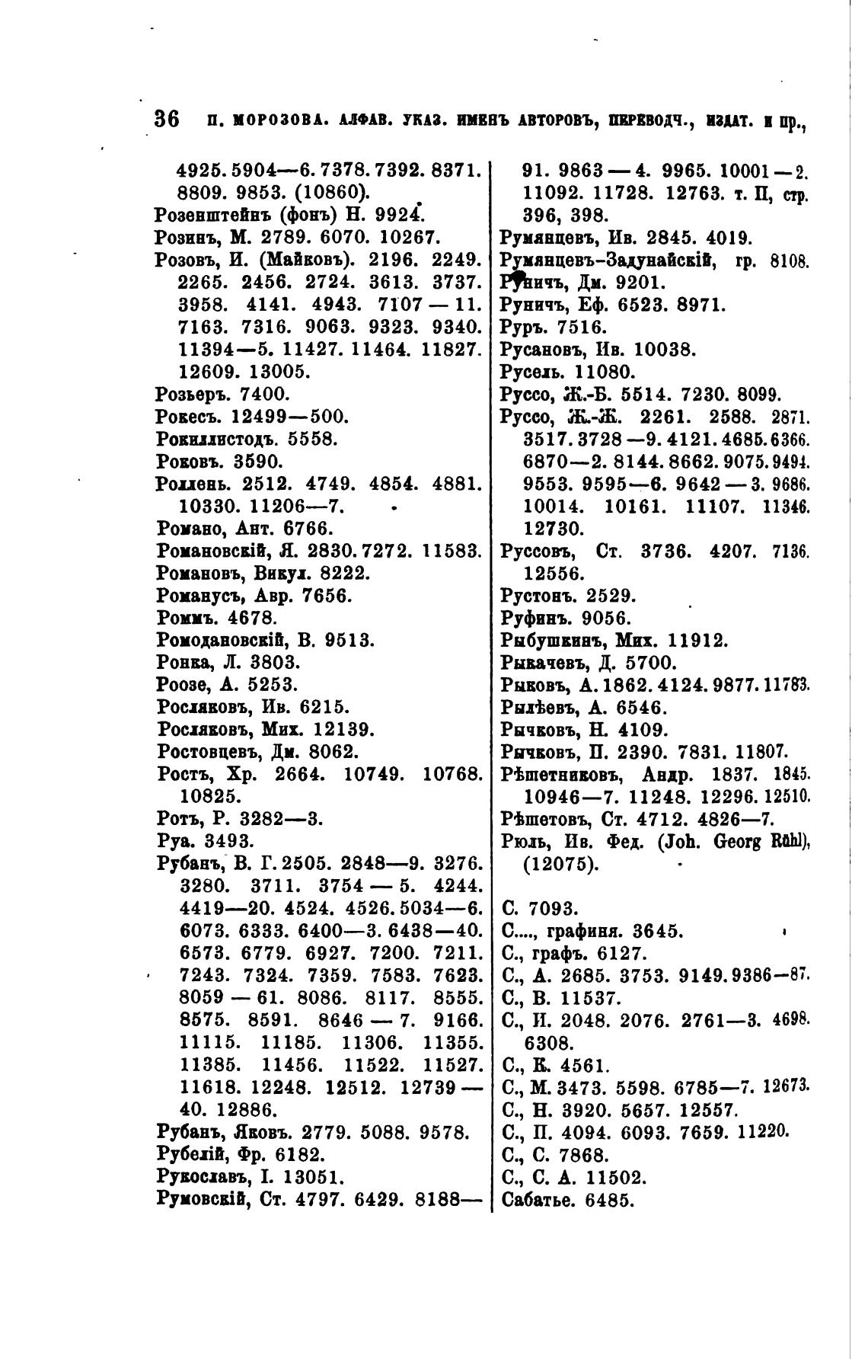 36 П. МОРОЗОВА. АЛФАВ. УКАЗ. ИМВВЪ АВТОРОВЪ, ПЕРЕВОДЧ., ИЗИт. И пр.,