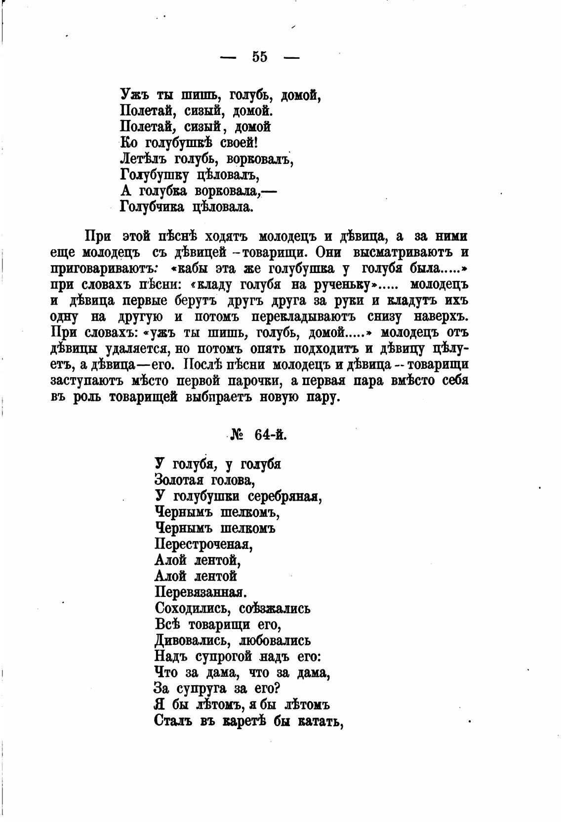 приговариваютъ: «вабы эта же голубушка у голубя была.....»