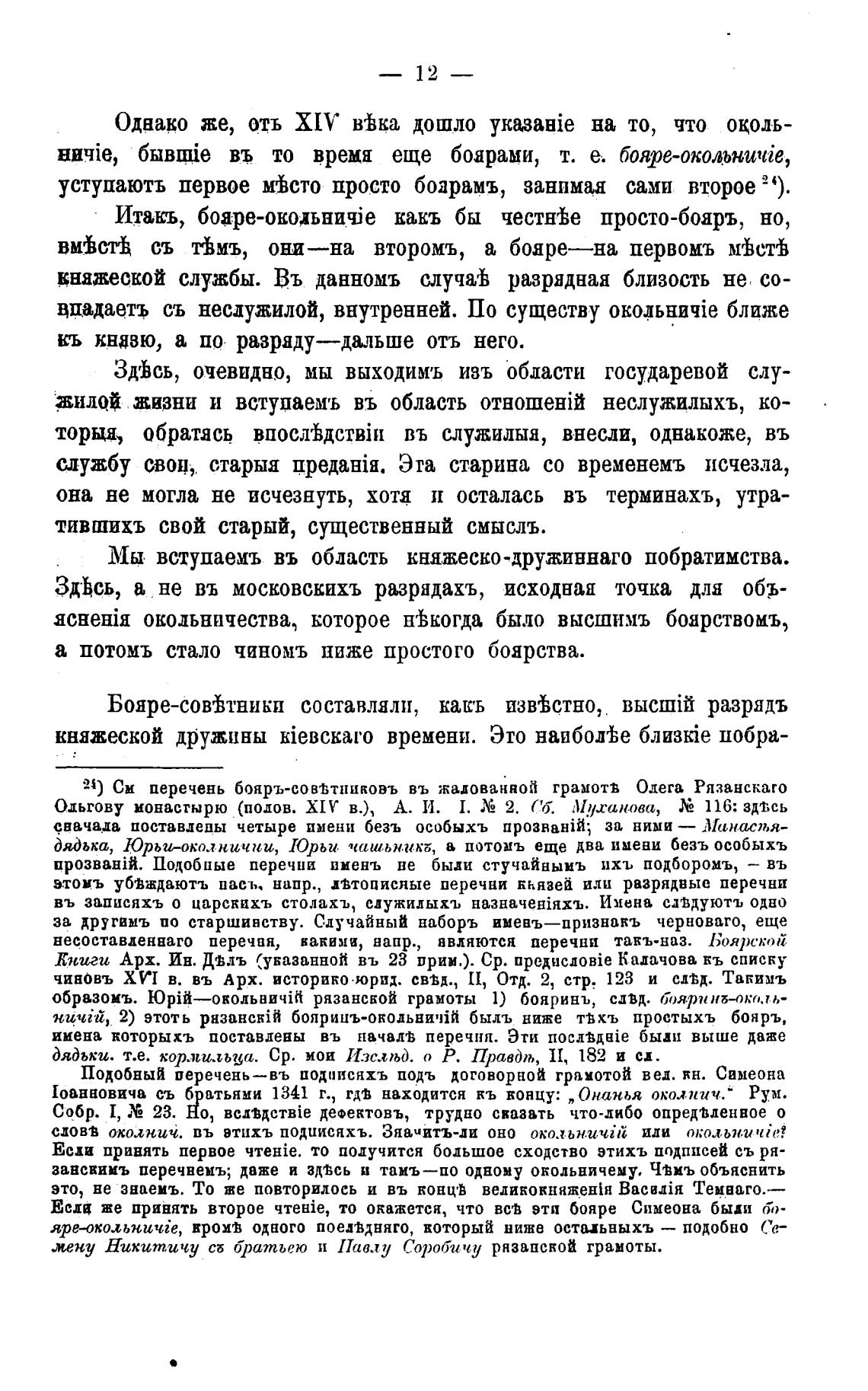 24) Си перечень бояръ-совјтниковъ въ жадованной грамотв Олега Ря.занскаго